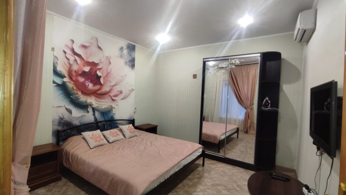 «Розовая мечта» - двухкомнатный номер на первом этаже двухэтажного дома со всеми удобствами и отдельным входом для четверых гостей.
