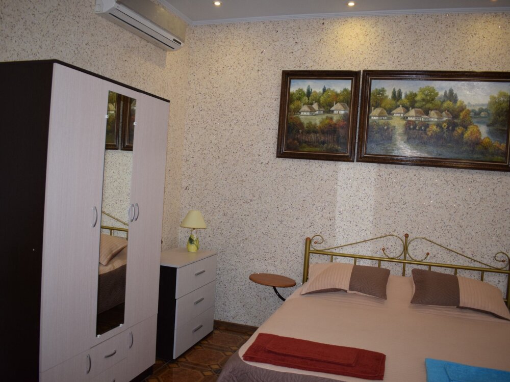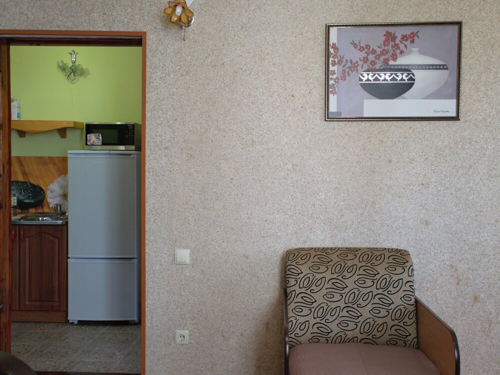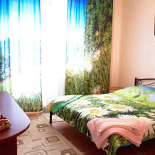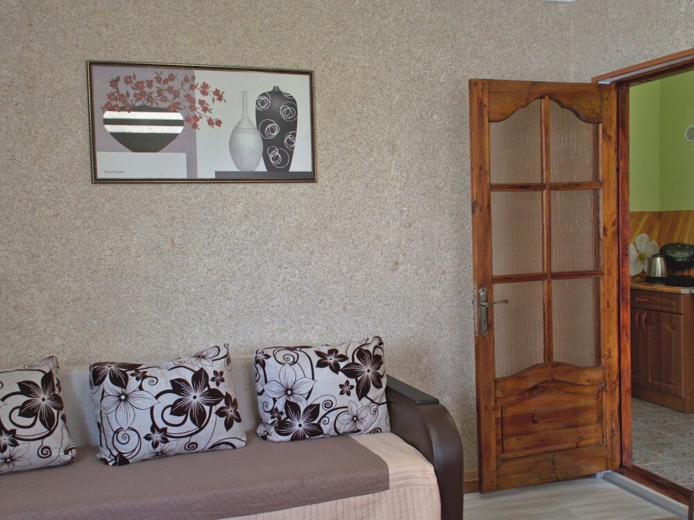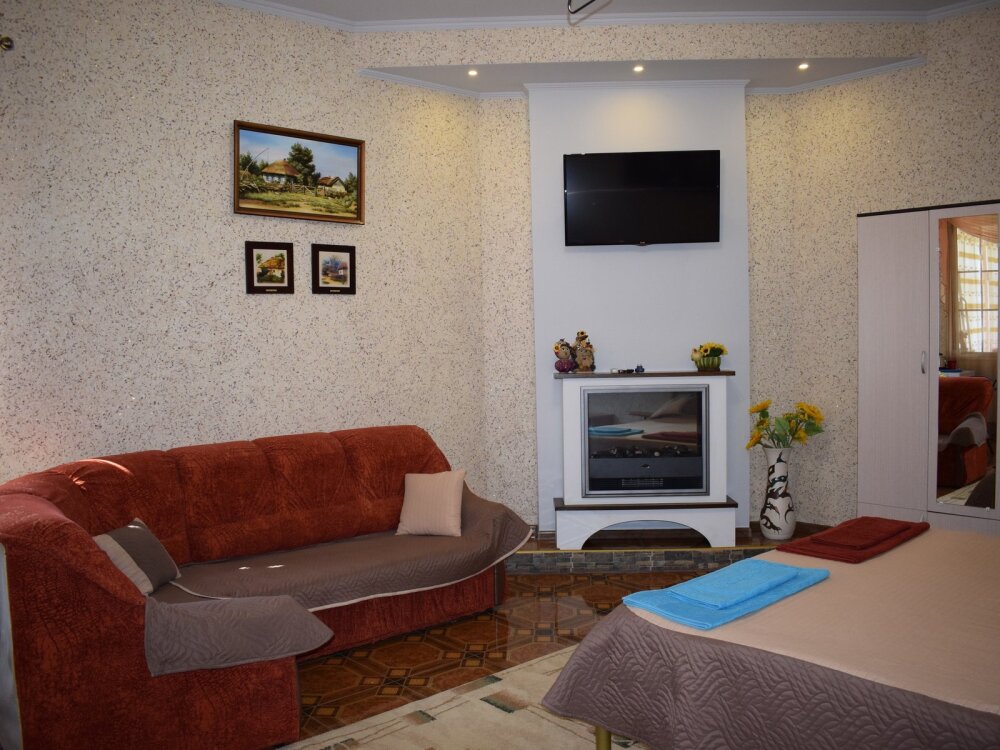 Отличный просторный номер для четырех человек (с возможностью размещения еще одного человека). Большая двухспальная кровать и диван-кровать. Также в номере есть балкон. В номере есть все для полноценного и комфортного отдыха в Феодосии. Уютный зеленый дворик, детская площадка, летняя кухня, водоем с рыбками - это все поможет вам полностью расслабиться, забыть обо всем, кроме отдыха.