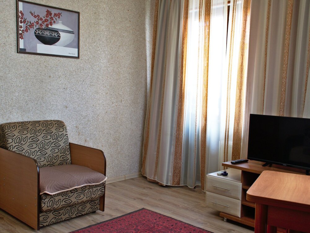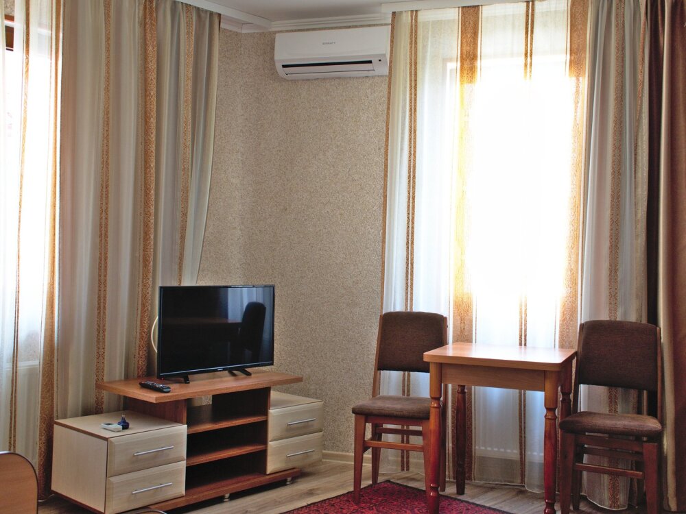 Удобный и просторный номер для 4-х человек (возможно добавление одного дополнительного места). Номер оборудован всем необходимым для комфортабельного отдыха, а также в нем имеется своя мини-кухня.
