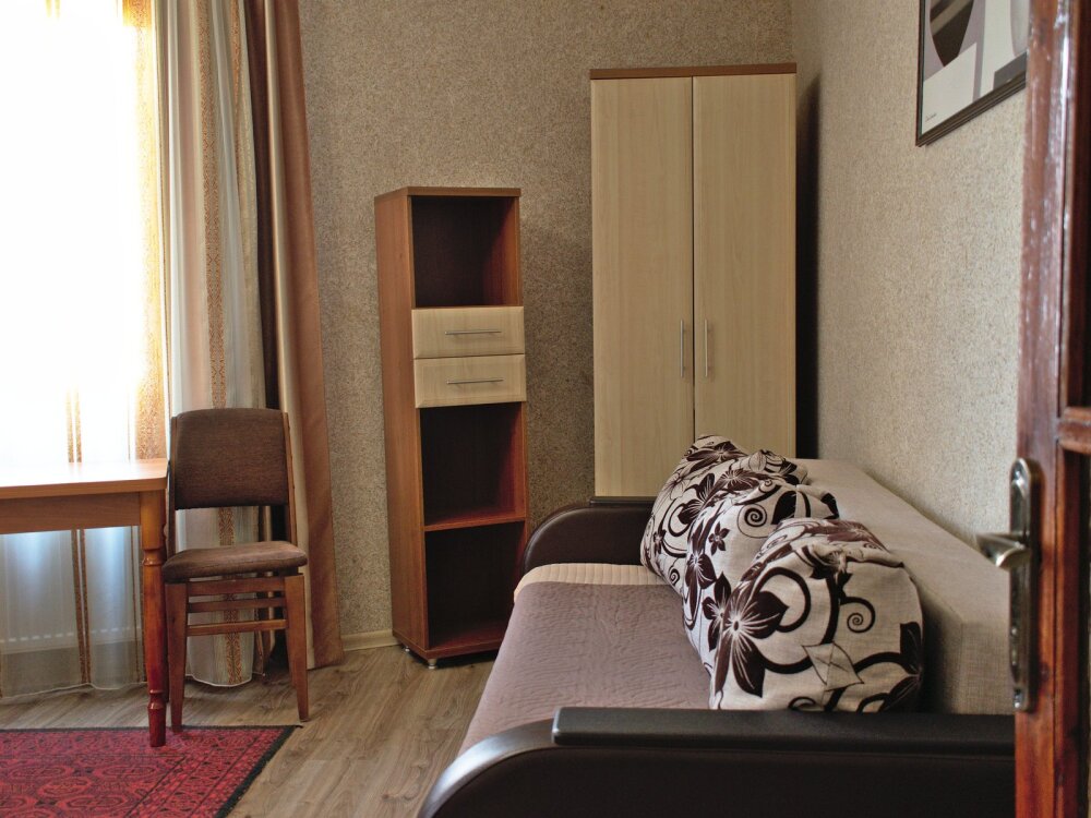 Трехместный номер для семейного отдыха. В номере имеется большая двухместная кровать, а также раскладной диван. В номере есть балкон, где можно отдохнуть тихим летним вечером или приятно позавтракать в ласковых лучах восходящего солнца.