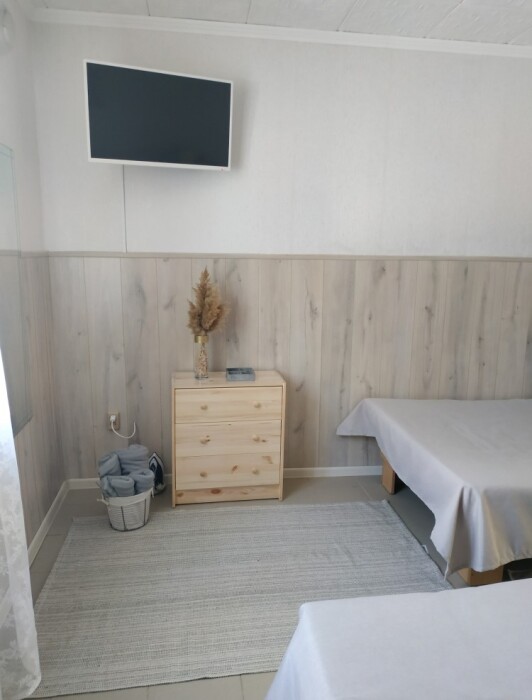 Все удобства: кухня с посудой и холодильником, санузел, спальня на 4 места с телевизором, кондиционером, бельем, Wi-fi.