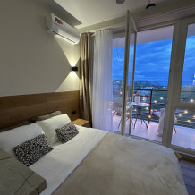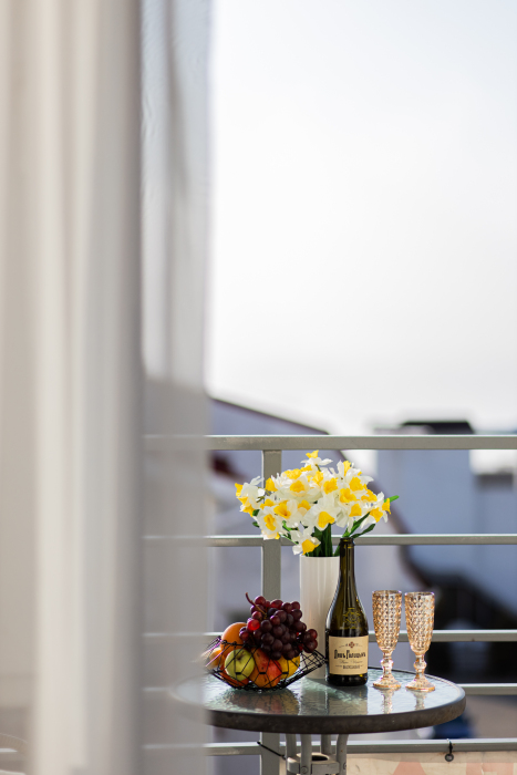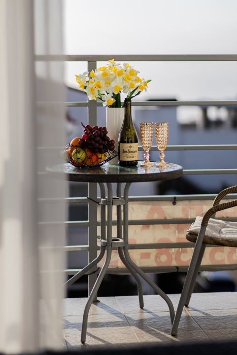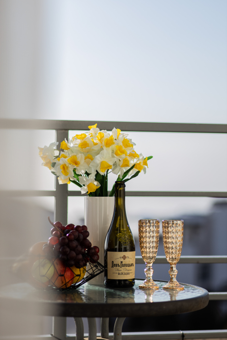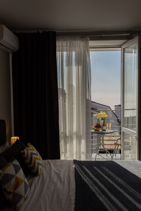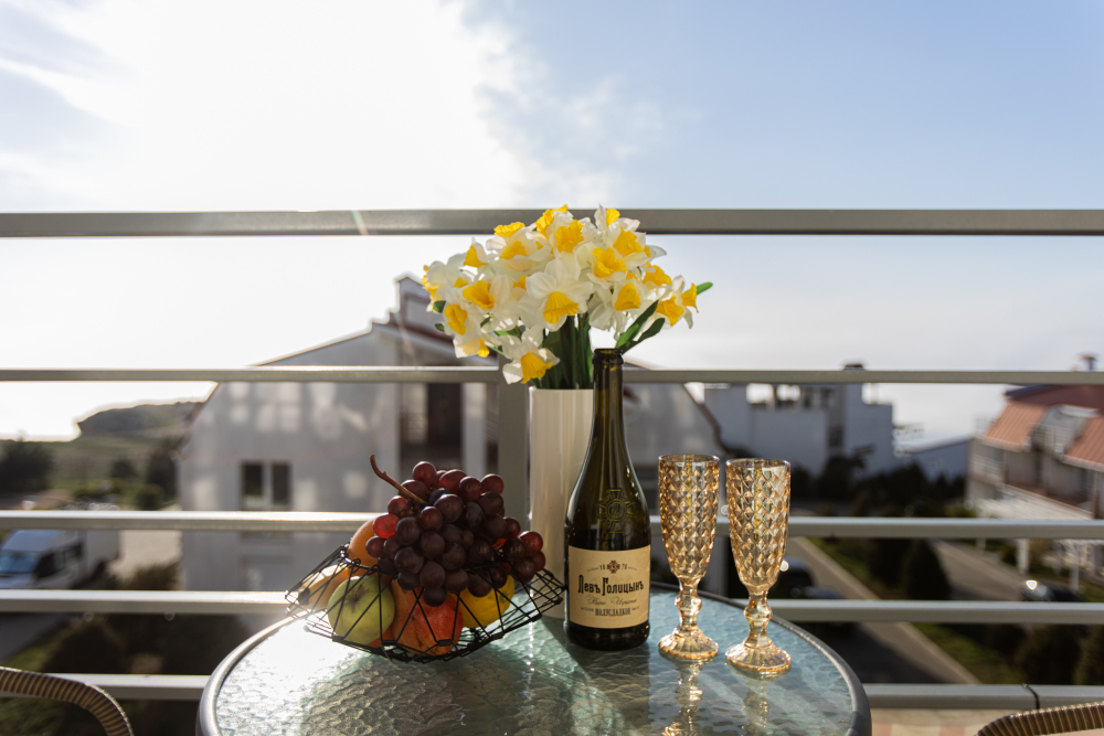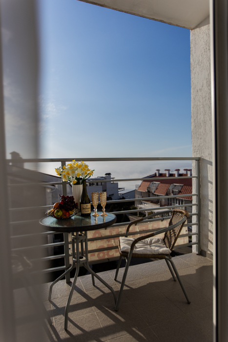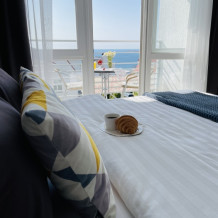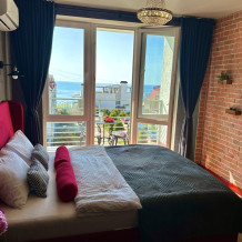В каждом апартаменте есть все необходимое для комфортного проживания и отдыха: телевизор, Wi-Fi, стиральная машина, варочная поверхность, чайник, фен, посуда, кондиционер, утюг, тёплые полы. Чистое выглаженное постельное белье и полотенца. Балкон с видом на море оборудован столиком и диванчиком. После каждого гостя обработка номера дезинфицирующими средствами.
