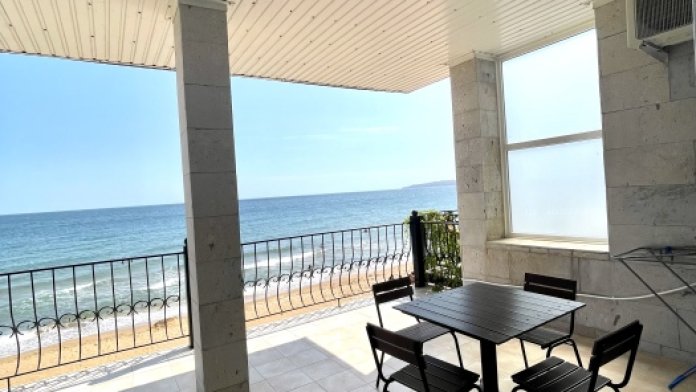Планировка -2 комнаты и просторная гостиная ,кухня ,2 ванные комнаты совмещенные, 2 туалета ,просторная терасса с обеденной зоной и видом на пляж , телевизоры с плоским экраном и спутниковыми каналами