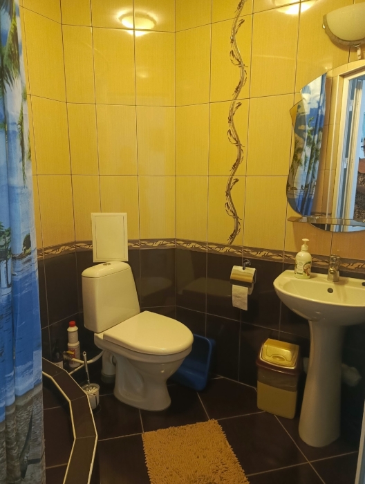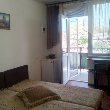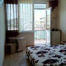 В доме имеются четыре 2-х местных номера. На каждом этаже по 2 номера отдельно. Номера на 2-ом и 3-ем этажах. Рядом в доме есть также трёхместные номера. В каждом номере отдельный санузел, кондиционер, две кровати, шкаф, столик, стулья, спутниковое TV, холодильник, посуда, утюг, чайник, Wi-Fi. Питание самостоятельное. Номер оборудован всем необходимым для вашего комфортного проживания. Домашняя атмосфера позволит вам чувствовать себя уютно.