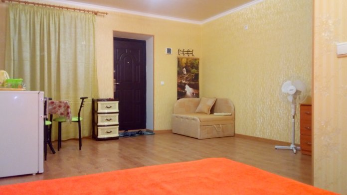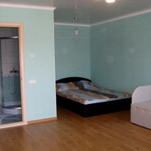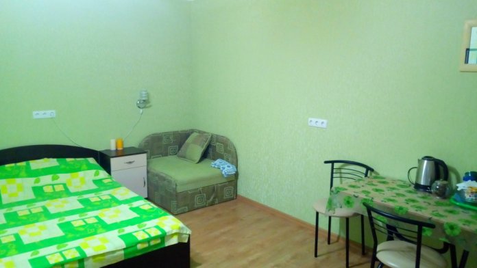 Трёхместный номер студия, оборудован всем необходимым для комфортного проживания. В номере есть кухня. Двухспальная кровать, кресло кровать, прикроватные тумбочки, столик, стулья, шкаф. Номер оборудован всем необходимым для вашего комфортного проживания. Домашняя атмосфера позволит вам чувствовать себя уютно.