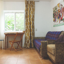 Двухкомнатный прохладный обособленный номер на 1 этаже рядом с кухней.