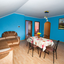На территории гостевого дома есть небольшой и уютный двор, места для отдыха на свежем воздухе, мангал, общая кухня-столовая, оборудованная всем необходимым для самостоятельного приготовления пищи.