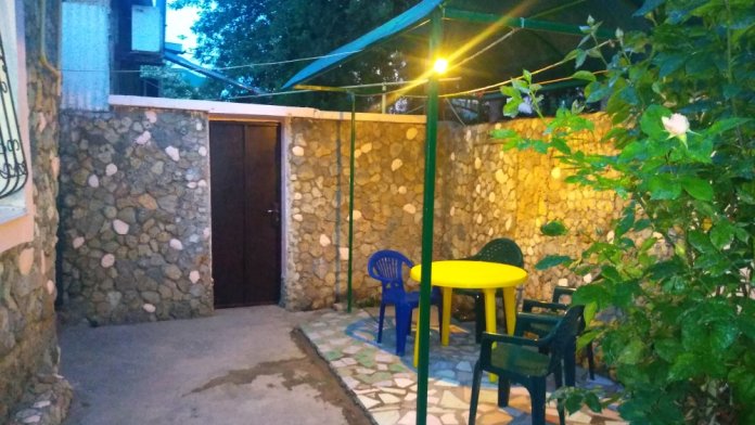 Во дворе, по мимо дома, есть душевая и санузел. В доме две комнаты раздельные, в одной комнате двуспальный диван и односпальная кровать. В другой спальни двуспальная кровать и двуспальный диван, шкафы, 2 телевизора, стиральная машинка, кондиционер, душевая, санузел.