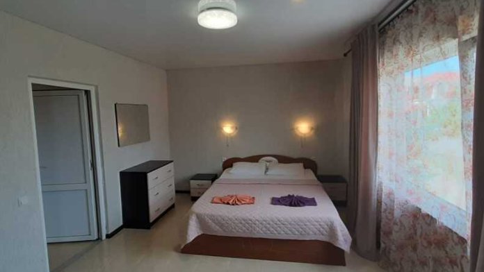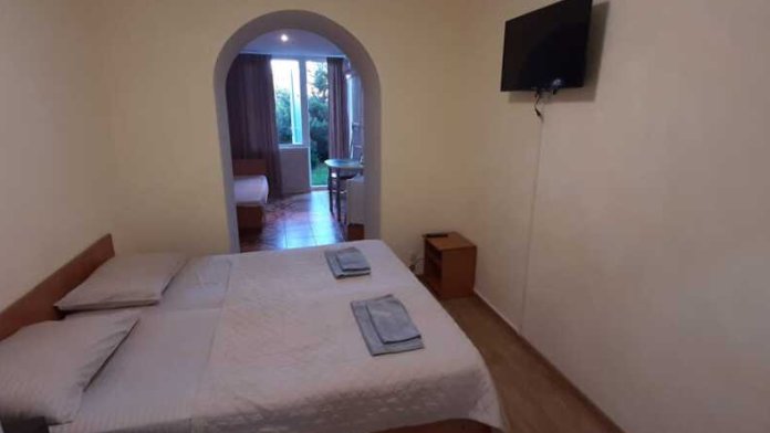 Однокомнатные номера на 1м и 2м этаже. Имеется общий балкон. В номере: двуспальная кровать, прикроватные тумбочки, гардеробная, зеркало, телевизор, кондиционер ,ванная комната, фен, полотенца, постельное бельё.