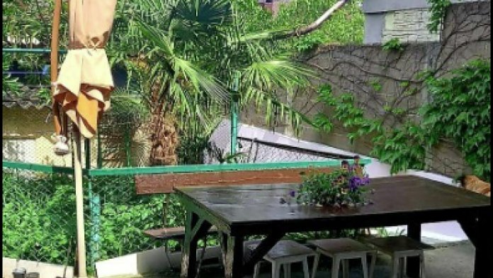 Летняя кухня на два домика, на кухне газовая плита, микроволновка, полностью вся необходимая посуда.