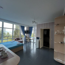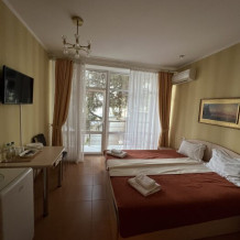 Все номера укомплектованы современной мебелью, телевизором, холодильником, кондиционером, есть также фен, полотенца, чайник, посуда, высокоскоростной WI-FI и всё, чтобы вы смогли насладиться временем, проведенным в стенах нашего дома. Ежедневная влажная уборка в номерах, возможность постирать и погладить одежду.