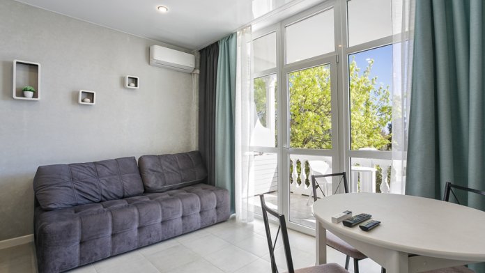 Однокомнатная квартира-студия с шикарным видом на бескрайнее море и парк, на втором этаже, напротив санатория имени Боброва.