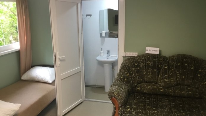 Номер для 4-5 чел (размер 20 м.кв). Отдельно стоящая постройка, в которой одна комната для 4-5 человек. В помещении есть совмещённый туалет и душ(кухня летняя на два номера, холодильник персональный стоит на кухне). В комнате одна двухместная кровать 120см, две односпальные кровати, кресло-кровать, шкаф, телевизор, кондиционер, WI-FI. Рядом с номером растёт инжир, гранат, есть мангал.