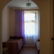 Обустроенные 2-х, 3-х местные номера эконом-класса с санузлом, кухня со всей необходимой посудой на два номера, душ на территории (есть бойлер). Во дворе есть кухня с большим обеденным столом, телевизор, стиральная машинка автомат (общего пользования).