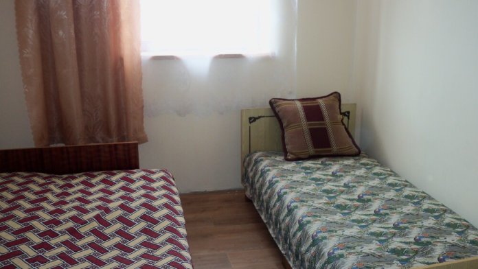 В каждой комнате по два 1,5 дивана, шкаф, тумбочка, вентилятор. Кухня со всей необходимой посудой в блоке, два холодильника. Санузел в блоке на 2 комнаты, душевые во дворе. Предоставляем все необходимое. Можно снимать по одной комнате
