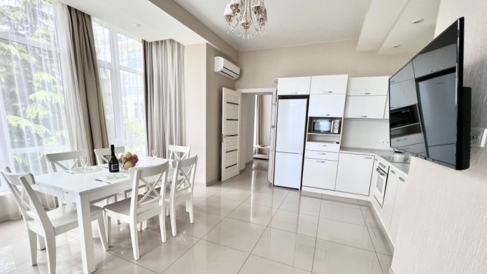 1 двуспальная кровать, 1 диван-кровать, 1 кресло-кровать, детская кроватка (по запросу)