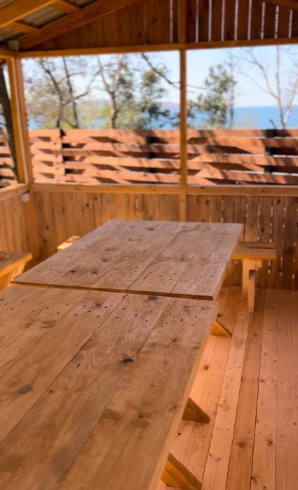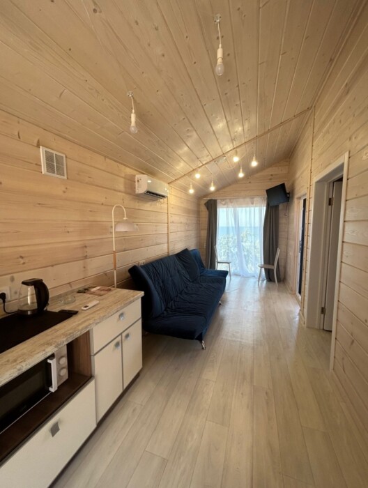 Эко домики с верандой и панорамным видом на море. Паркинг на территории отеля. Наличие детской площадки. Мангал - зоны для шашлыка оборудованы деревянными беседками.