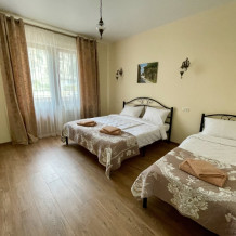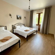 Номер с двумя односпальными кроватями, расположен на первом этаже, в номере имеется свой санузел (душ, раковина, туалет), окна выходят во двор и с которого прекрасно видна горы и можжевеловую рощу. Есть открытая терраса на втором этаже. Парковка на территории. Возможен заказ завтрака (оплачивается отдельно).