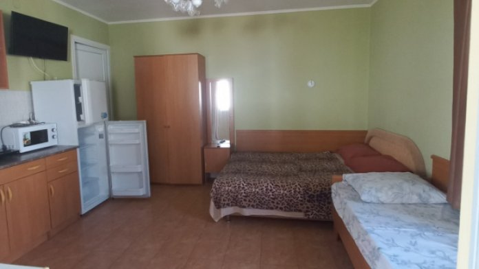 В апартаменте есть все необходимое для комфортного отдыха: своя личная оборудованная кухня (СВЧ-печь, плита индукционная, холодильник), телевизор, кондиционер, свой личный санузел, холодная и горячая вода круглосуточно, постельное белье, размещение до 5 человек.