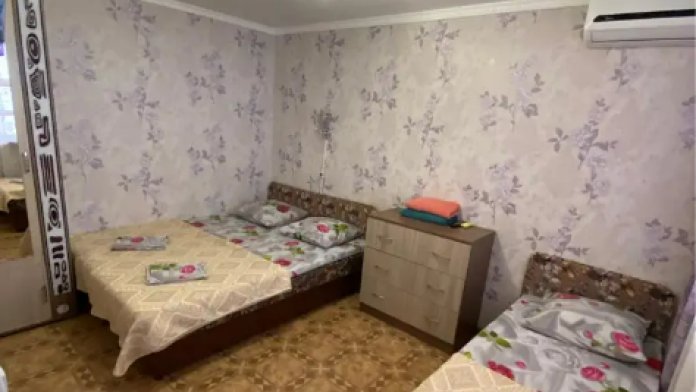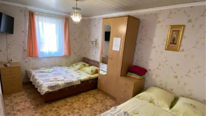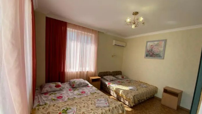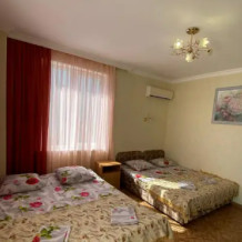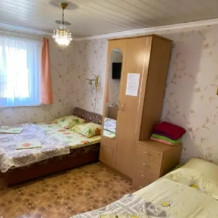 Уютный номер с удобствами (душ, туалет). В номер: одна двуспальная кровать и одна односпальная. Также есть шкаф, комод, телевизор, холодильник, кондиционер, три комплекта полотенец. Рядом с номером обеденный стол.