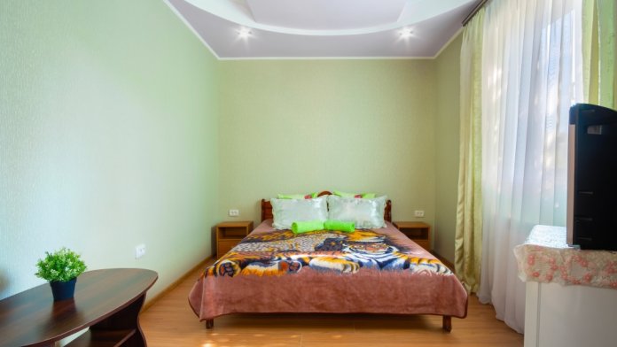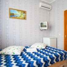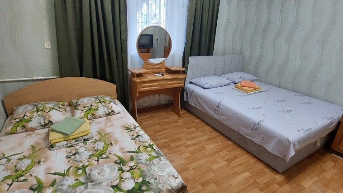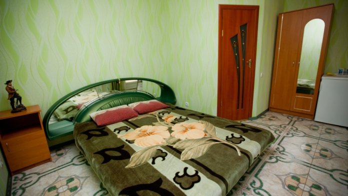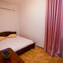 Номер «Царица» - шикарный, просторный номер, дизайн выполнен со вкусом, сами хозяева декорировали этот номер. Получил название «Царица» за оформление. Особенности: находится на 2-м этаже, имеет 2 больших окна и собственный балкон, где можно посидеть за столиком и полюбоваться садом. Большой холодильник и жк телевизор, чайник сделают проживание ещё более комфортным. Номер семейный говорит сам за себя. Часто бывает на стопе, бронировать рекомендуем заранее.