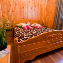 Номер «Малиновый рай»- уединённый, романтичный номер. Мебель сделана из дуба ручной работы. Номер находится на 1-м этаже, подойдёт для всех желающих отдохнуть у нас. Мы называем его универсальным, из-за его расположения часто пользуется спросом. Душ и туалет общие на два номера, на этаже.