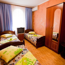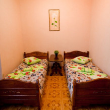 Номер «Божья коровка» - назван из-за постельного белья в номере, имеющим силуэты божьей коровки. В номере 3 раздельные полуторные кровати, выполненные из дуба. Одно из преимуществ, номер находится на 1-м этаже. Душ и туалет общие на два номера, на этаже.