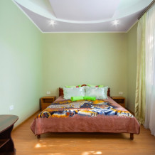 Номер «Звёздный» - название данного номера дали сами гости отеля. Это семейный люкс, полностью реновирован, и добавлена ванная комната с ванной, что особенно удобно для семей с детьми. Почему же «Звёздный»? Всё просто это из-за звёзд, которыми усыпан весь потолок. Номер получился звёздным в прямом смысле этого слова. Особенностью номера является также наличие двух окон, выходящих на балкон, вид на кроны деревьев. Выход на балкон через гостиную, там также расположена кухня, где можно что-то приготовить.