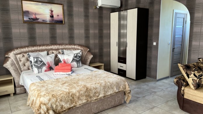 Апартамент «Алые паруса»- получил своё название благодаря картине, которая висит на стене в изголовье кровати. Номер навивает романтику и одновременно практичность, так как имеет шикарную кровать с великолепным видом на веранду и личную кухню, где гости могут, что-то приготовить для себя и членов своей семьи. Безусловным плюсом будет наличии ванной, а не душевой кабины в ванной комнате, так как многие останавливаясь здесь, приезжают со своими детками и в ванне им будет намного удобней. Этот номер подойдёт также для пар, так как имеет большую кровать размера King-size.