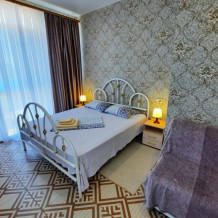 На закрытой территории гостям для размещения предлагаются номера разных категорий и вместимости, со всем необходимым для комфортного отдыха. На территории отеля есть мини-детский уголок, садовые качели, большой каменный мангал, общая кухня.
