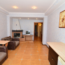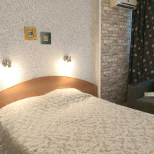 Небольшой номер на 2-3 человека. Особенно удобен для отдыха пожилым людям и гостям с маленькими детьми. В номере своя кухня, большой холодильник с морозильной камерой.