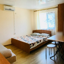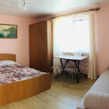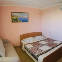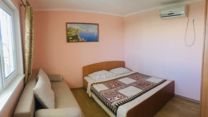 В гостевом доме 4 комфортных нoмеpa. В каждом номере индивидуальный санузел (туалет, душевая, умывальник), холодильник, телевизор, кондиционер, металлическая дверь. На 2 этаже 3 номера с выходом на просторный балкон. Во дворе качели для отдыха. Напротив дома беседка с мангалам. Есть стоянка для авто.