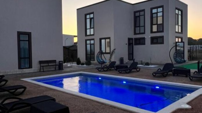 Гостевой дом «Villa Lazurit» находится у самого Черного моря (350 метров от пляжа «Белая Жемчужина») в поселке Оленевка, расположенном на мысе Тарханкут, который является Национальным заповедником.