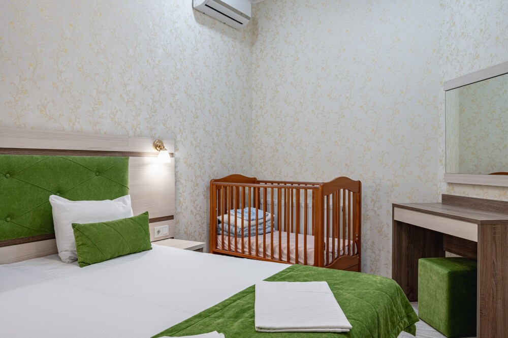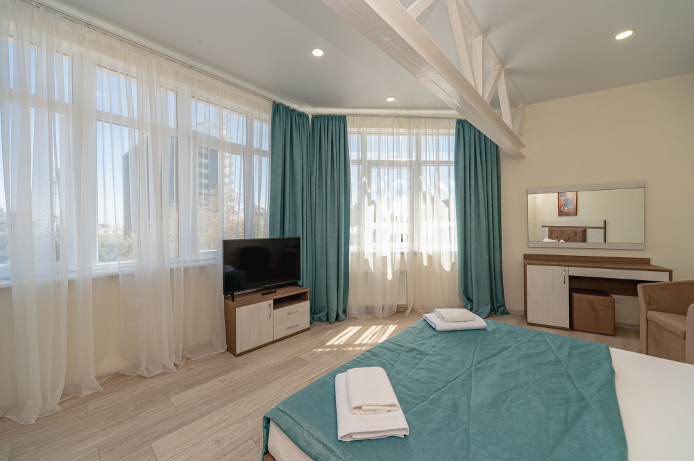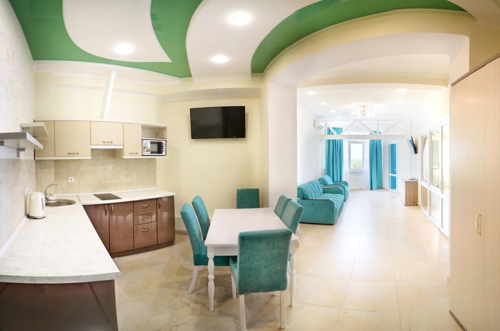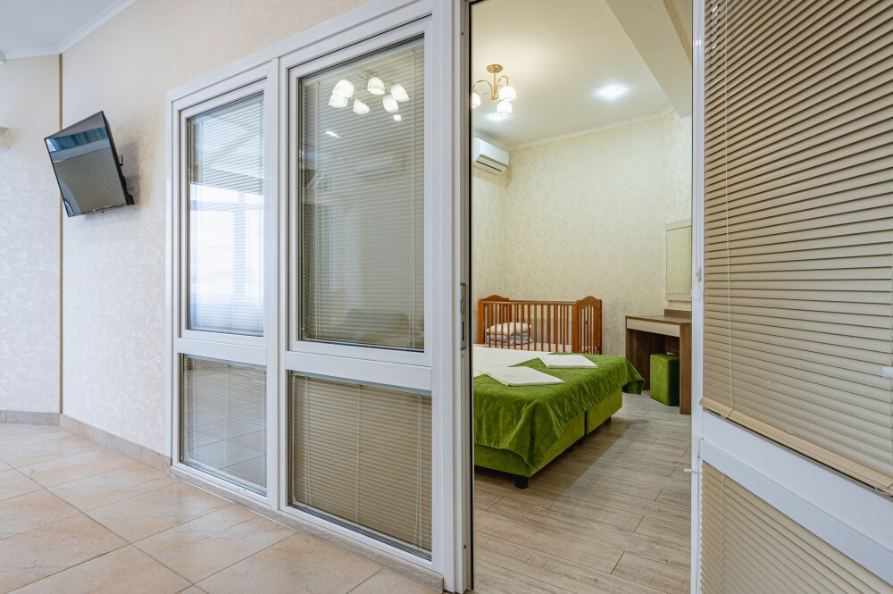 В вашем распоряжении 12 номера-квартир, в них имеются (французские декоративные балконы) с видом на город, море, горы, кондиционеры, отопление, Wi-Fi, кабельное телевидение, мини кухня. В апартаментах 4, 5, 9, 10, 11 есть стиральная машина. В Апартаментах 11 имеется два балкона. Номера расположены на 5, 6 и 7 этажах, лифт работает круглосуточно без перебоев.