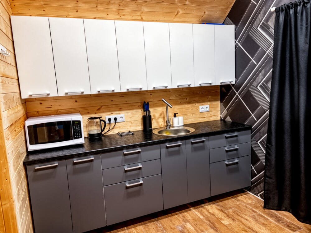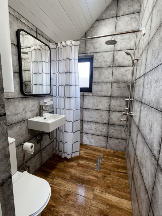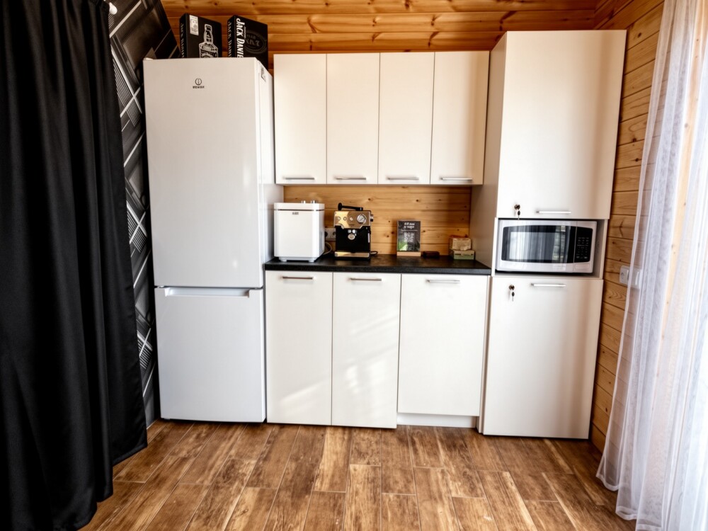 Для размещения предлагаем 4 отдельных 3-местных домиков со всеми удобствами внутри. Домики выполнены из натуральных материалов в современном стиле минимализма.