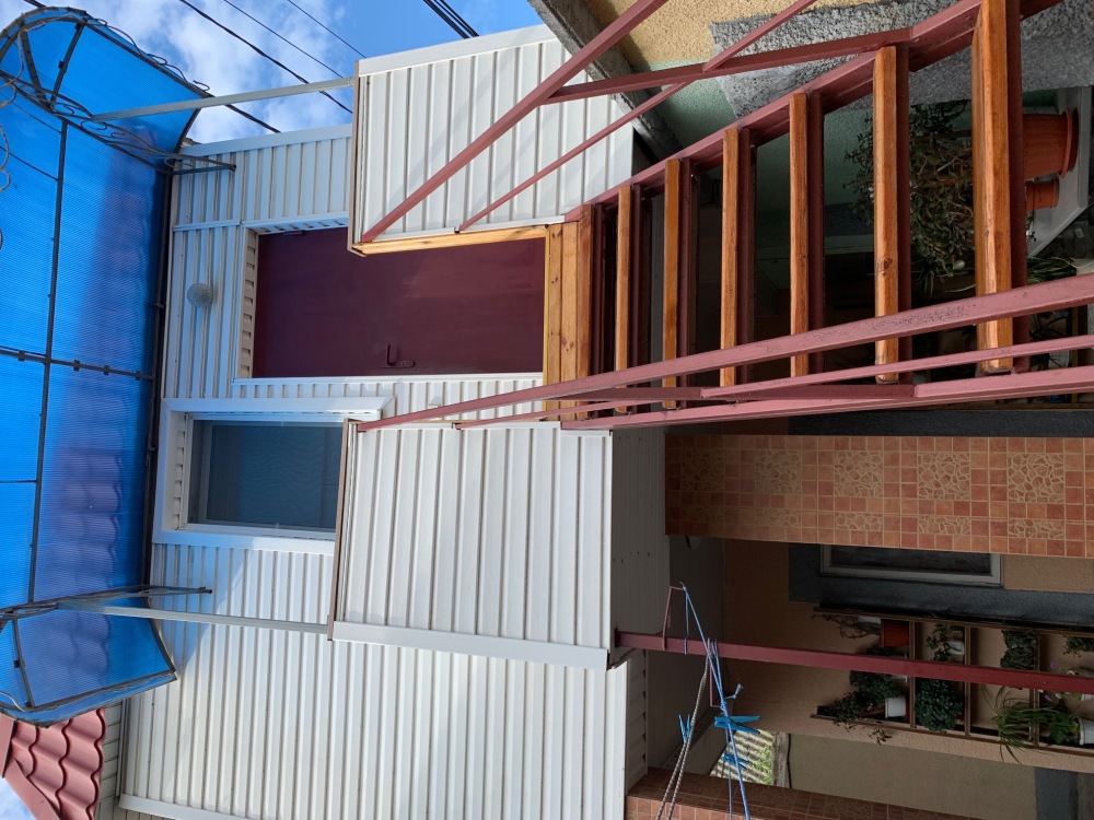 В номере: туалет, душ, (вода горячая постоянно), телевизор, кондиционер, интернет. Из мебели: плательный шкаф, мебельная стенка со шкафчиками для белья и рабочим местом для компьютера. Спальные места: двуспальная кровать и двуспальный диван. Окна номера выходят во двор дома. Во дворе мангал и беседка для отдыха. Кухня рядом с номером на две семьи.