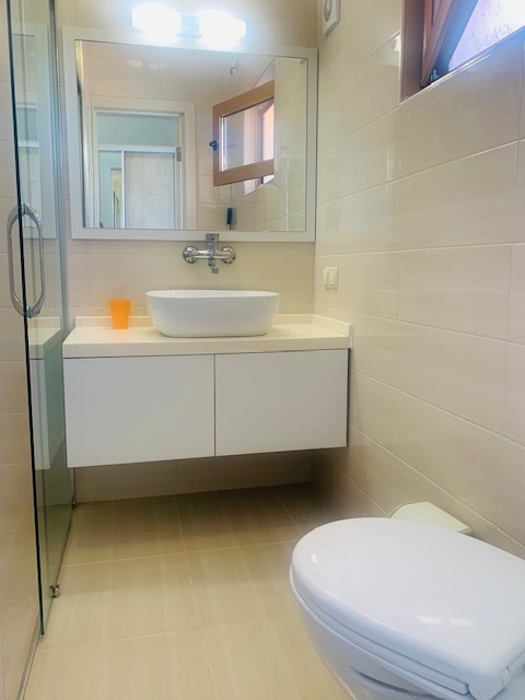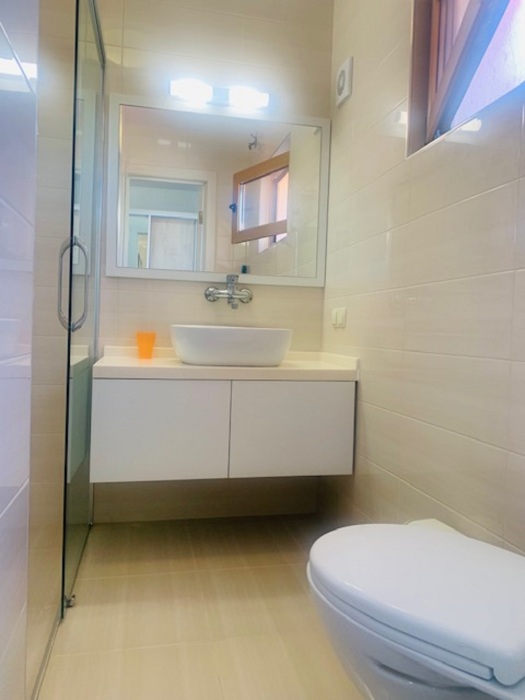 Душ и туалет расположены рядом с номером (только для этого номера). Рядом с номером находится кухня на две семьи. В комнате телевизор, кондиционер. Из мебели: плательный шкаф, мебельная стенка, со шкафчиками для белья и рабочим местом для компьютера. Спальные места: двуспальная кровать и двуспальный диван. Окна номера выходят во двор дома.