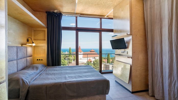 Квартира студия в прекрасном месте, под горой Кошка, в Симеизе. «Лунный камень» Четвертый этаж ,шестиэтажного дома. Вид на море и скалу Дива потрясающий. Квартира - студия со всеми удобствами, рассчитана на 4 человек. Есть зона кухни, где можно готовить: индукционная варочная поверхность, холодильник ,микроволновка, чайник, посуда для принятия и приготовления пищи, посудомоечная машина .Санузел совмещенный ,стиральная машина, бойлер, фен. Есть кондиционер, телевизор, WI-FI.В квартире теплый пол, Можно отдыхать в любое время года, по полу ходить босиком Утюг и гладильная доска. Есть все ,что нужно для комфортного отдыха.