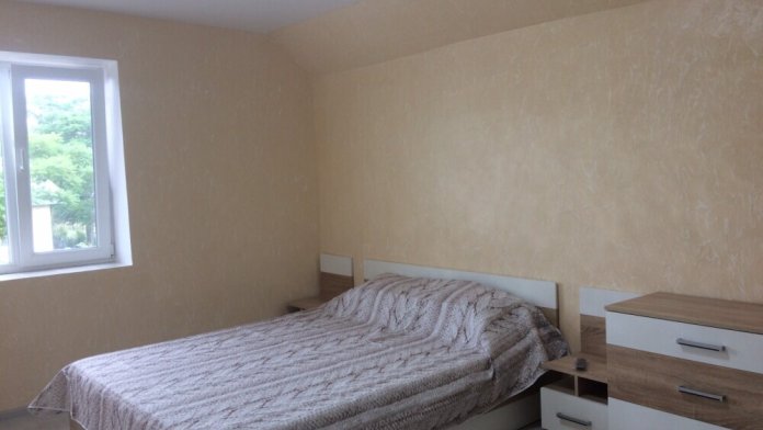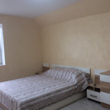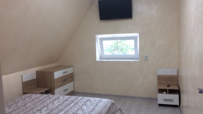 На первом этаже: две отдельные комнаты, оборудованные двухспальной кроватью, телевизором с интернетом, кондиционером, шкаф, комод, прикроватные тумбы, постельное, покрывала, одеяла, подушки. Ванная комната: душ, бойлер, унитаз и беде. А так же есть кухня-студия: варочная поверхность, вся необходимая посуда, стол на шесть персон, удобные стулья.