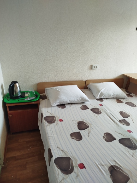Двухместный номер с одной двухместной кроватью или две вместе односпальные кровати .В номере кондиционер , холодильник ,телевизор ,туалет , душ ,чайник ,постельное бельё , полотенце .с видом на внутренний двор.