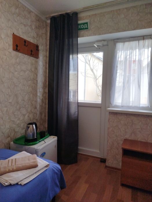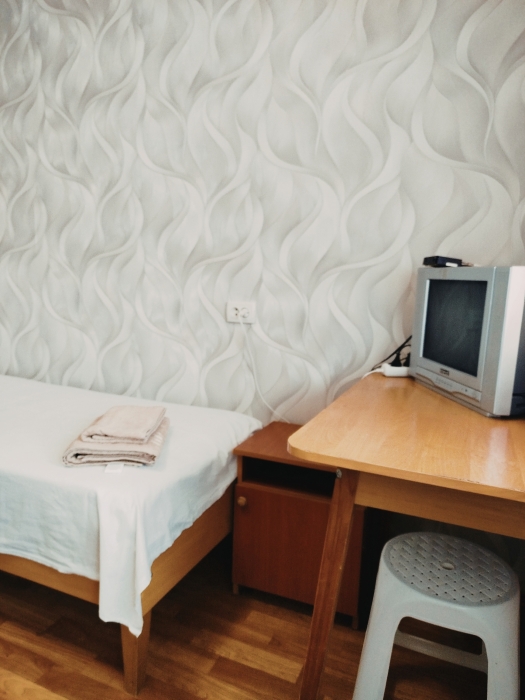 Одноместный номер «Стандарт» с видом на тихую улицу. Оснащение номера: удобная односпальная кровать со свежим постельным бельем, собственный санузел с туалетом и душевой кабиной, климат-контроль: кондиционер, холодильник и электрический чайник. Окна выходят на тихую, уютную улицу мини-городка, что гарантирует тишину и спокойный сон