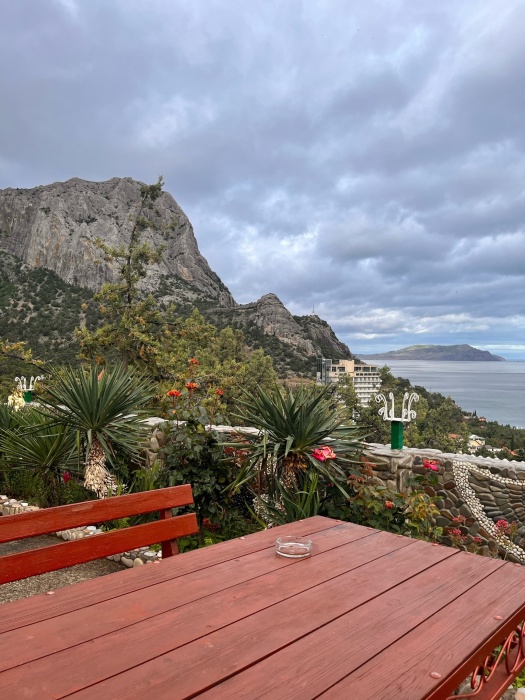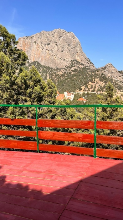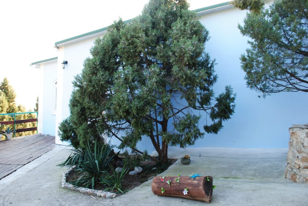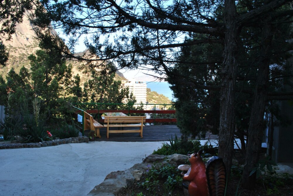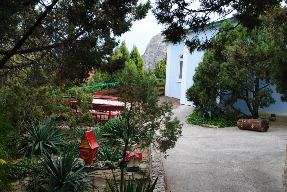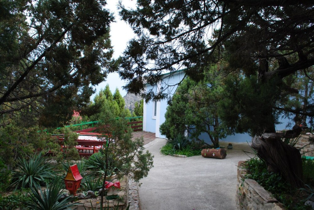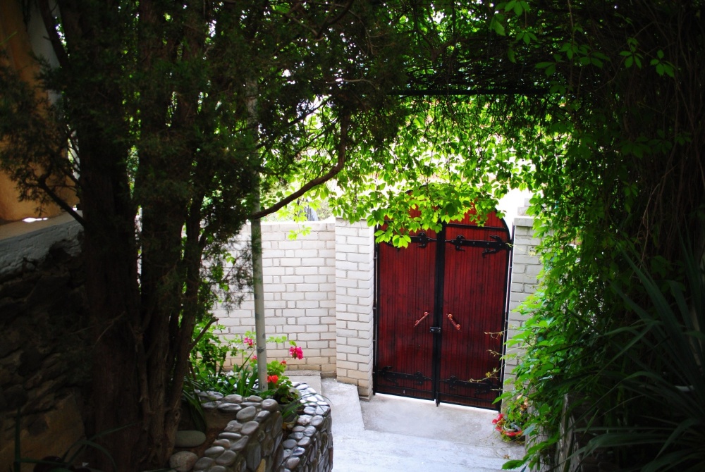 Наш небольшой , но уютный частный двор расположен в тихом и красивом месте с видом на море , бухту , горы и можжевеловый лес .