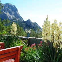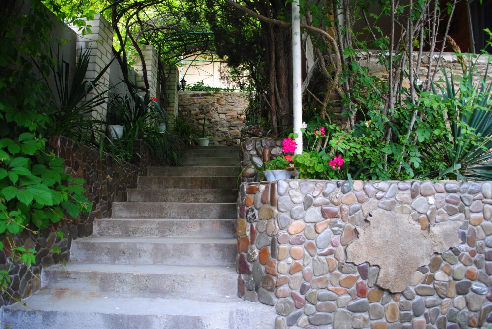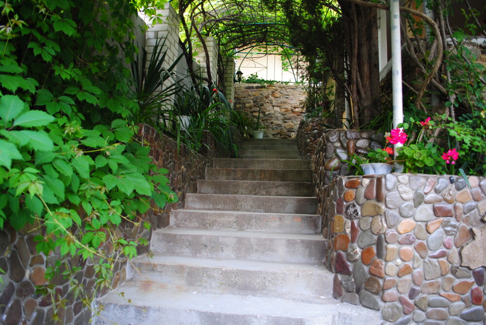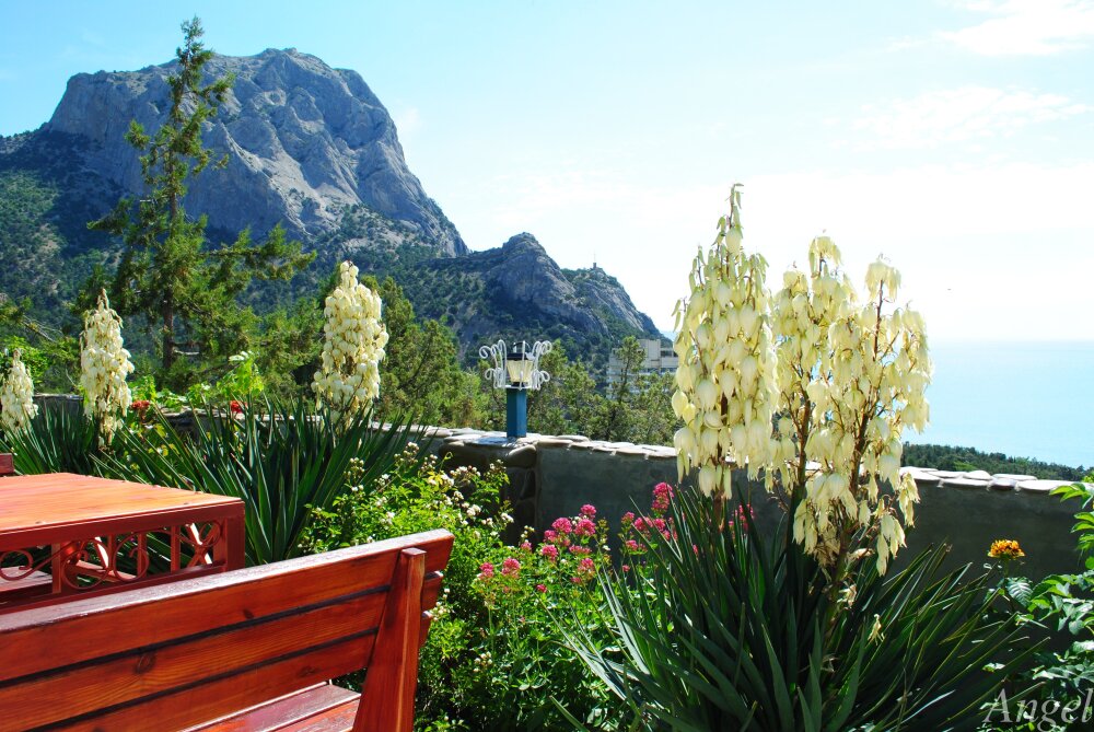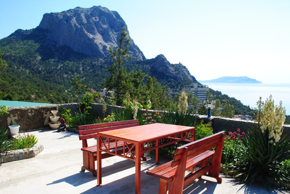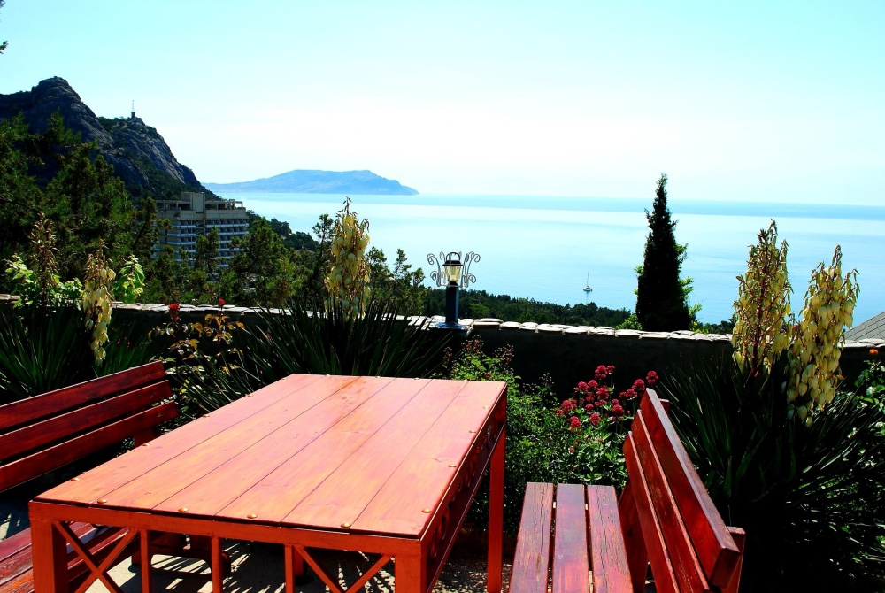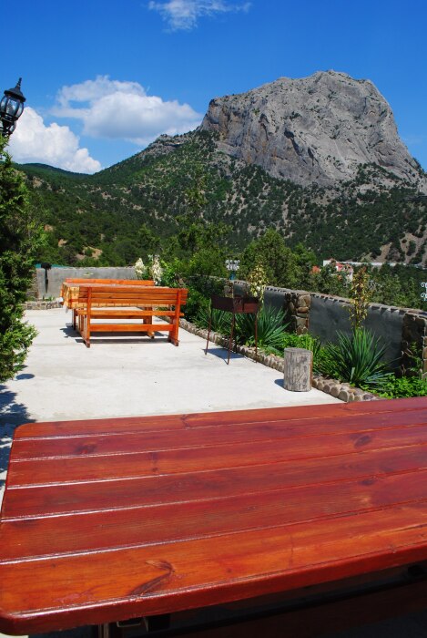 Наш небольшой , но уютный частный двор расположен в тихом и красивом месте с видом на море , бухту , горы и можжевеловый лес .