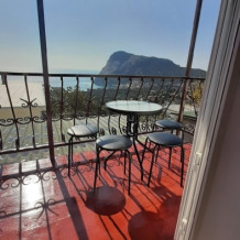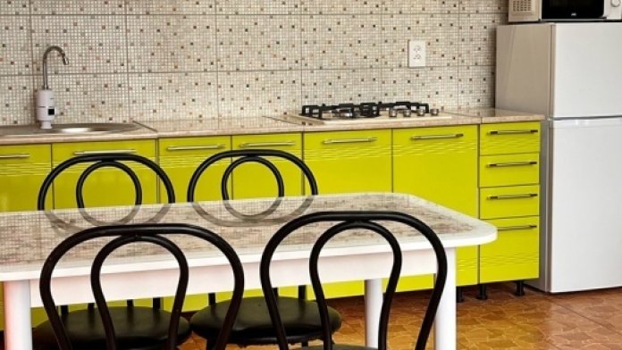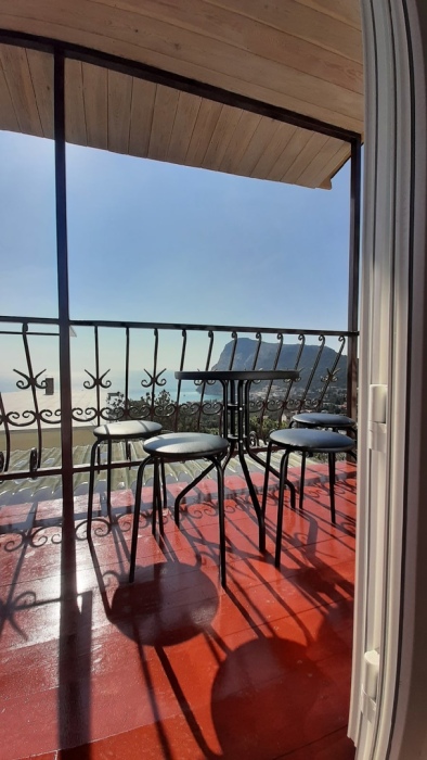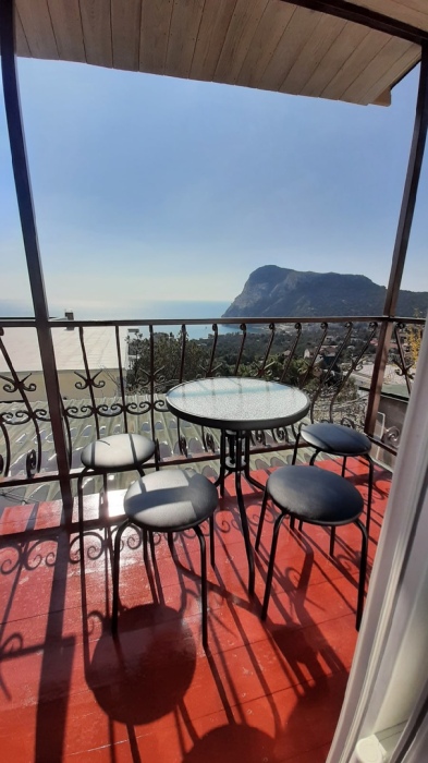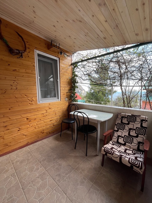 Двухместный номер только для одного или двух гостей, кондиционер,санузел в номере , своя кухня , большая двухспальная кровать , телевизор , интернет ,санузел в номере , вода круглосуточно,кухня оборудована всем необходимым, микроволновка, холодильник , плита , посуда,бельё и полотенца.Большой двор под ключ.Терраса с видом на море( место для приготовления шашлыка ), парковочное место .