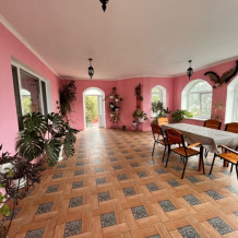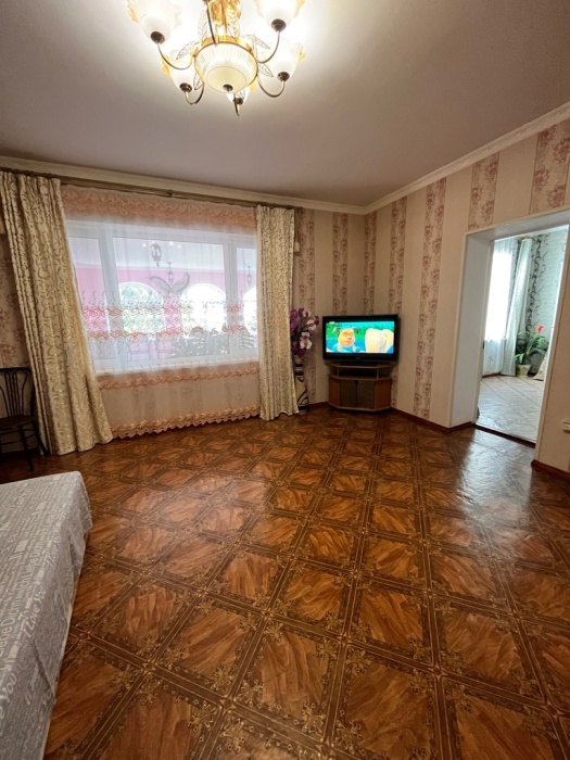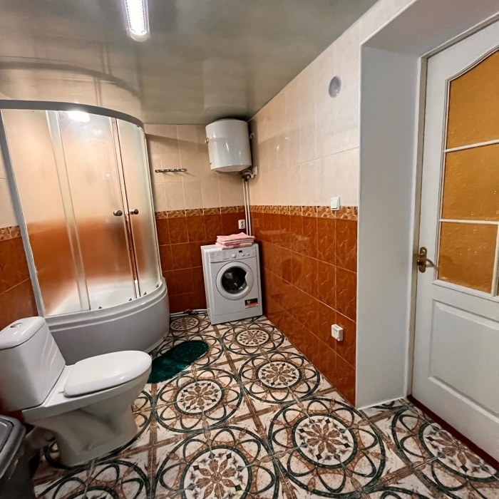 В доме три комнаты, санузел, кухня ,застеклённая терраса, площадка для отдыха на улице. На кухне большой холодильник, телевизор, вся посуда, электрочайник, микроволновка. В 1 комнате евродиван, шкаф-купе, телевизор, кондиционер, компьютерный столик. Во второй комнате два евродивана, телевизор, шкаф, столик, комод, кондиционер. 3 комната - в ней находится большой диван двухспальный, телевизор и шкаф- купе. 4 комната - прихожая, в которой расположен шкаф. Санузел в доме один, сантехника новая, душевая кабинка, бойлер, стиральная машинка, горячая и холодная вода круглосуточно.