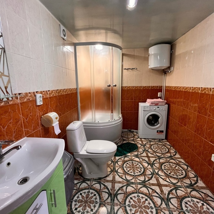 Комфортный номер на двух -трёх человек , своя кухня, кондиционер, диван двухспальный , односпальная кровать ,шкаф, столик , телевизор , интернет , все удобства , своя кухня , санузел в номере , кухня оборудована всем необходимым, микроволновка, холодильник , плита ., посуда.Предоставляем бельё и полотенца. Терраса для приготовления шашлыка.Парковка.