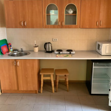 Предлагаем нашим гостям 8 уютных номеров площадью 30 м2, а так же закрытый тенистый зеленый дворик с мангальной зоной. Номера рассчитаны на 3-4-5 гостей и оснащены всем необходимым для комфортного отдыха. Каждый номер оборудован кухонной зоной (холодильник, чайник, электроплита, свч и необходимой посудой). В каждом номере совмещенный санузел с душевой кабиной, в комнатах кондиционер и кабельное ТВ. При заселении выдаются банные полотенца и постельное белье.