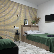 Номер для 2 взрослых и 2 детей с двуспальной кроватью 140х200 или 160х200, двуспальным диваном. Залог от 5000