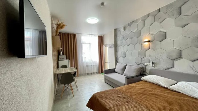 Апартаменты с собственной кухней для 2 взрослых и 2 детей с двуспальной кроватью 160х200, двуспальным диваном.