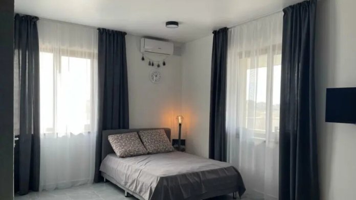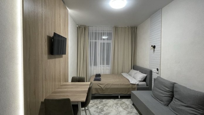 Большая кровать 140х200, двуспальный диван, шкаф, стол, стулья, холодильник, микроволновая печь, чайник. Постельное бельё, банные принадлежности. Бесплатно подогреваемый бассейн, шезлонги, беседка. Стирка, сушка, утюг. Парковка с видеонаблюдением. Хаммам и баня на территории за доп. плату.